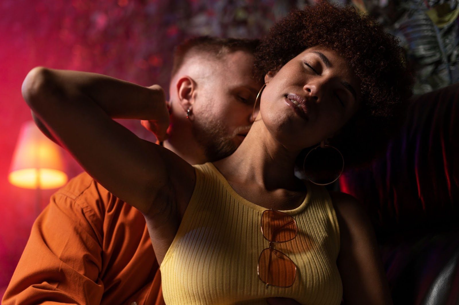 - Шея и затылок — нежные поцелуи, лёгкое массирование.