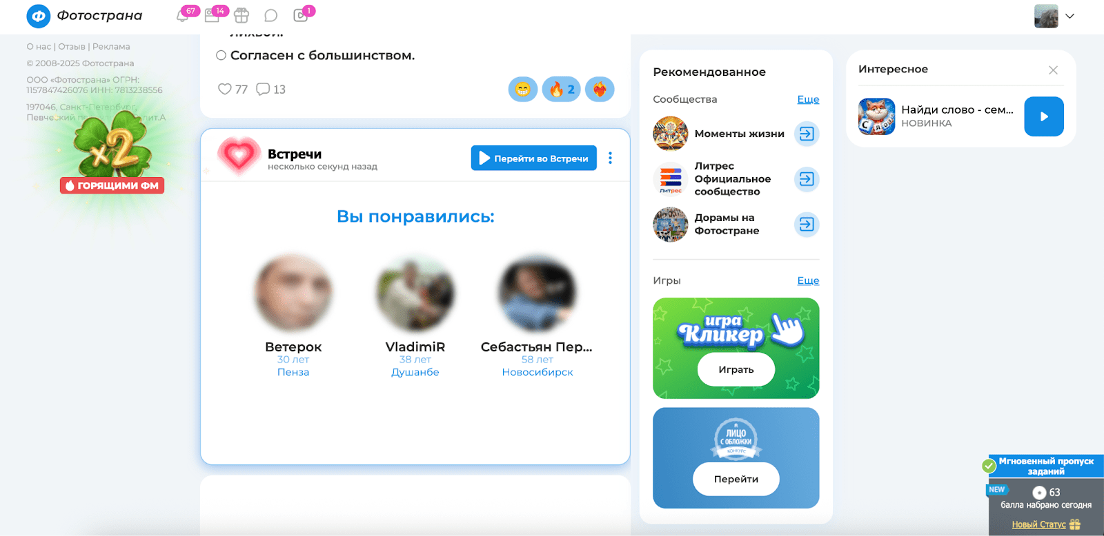 Фотострана — не просто сайт знакомств, а виртуальный луна-парк с аттракционами для одиноких. Работает с 2008 года и до сих пор привлекает толпы людей, которые хотят не только найти пару, но и повеселиться по дороге. Играй в мини-игры, участвуй в конкурсах, болтай в групповых чатах — скучно не будет.