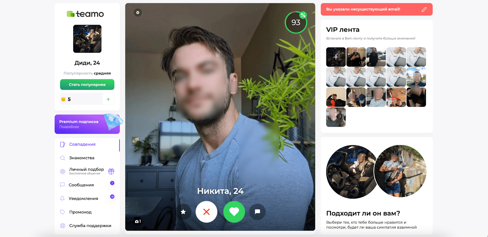 Алгоритм знакомит не по фоткам из отпуска, а по совпадению ценностей и интересов. За скромный взнос получаешь VIP-доступ: видишь, кто тебя лайкнул, продвигаешь анкету в топ и пользуешься расширенными фильтрами. Этот бесплатный сайт знакомств идеален для параноиков, ценителей приватности и тех, кто ищет качество, а не количество.