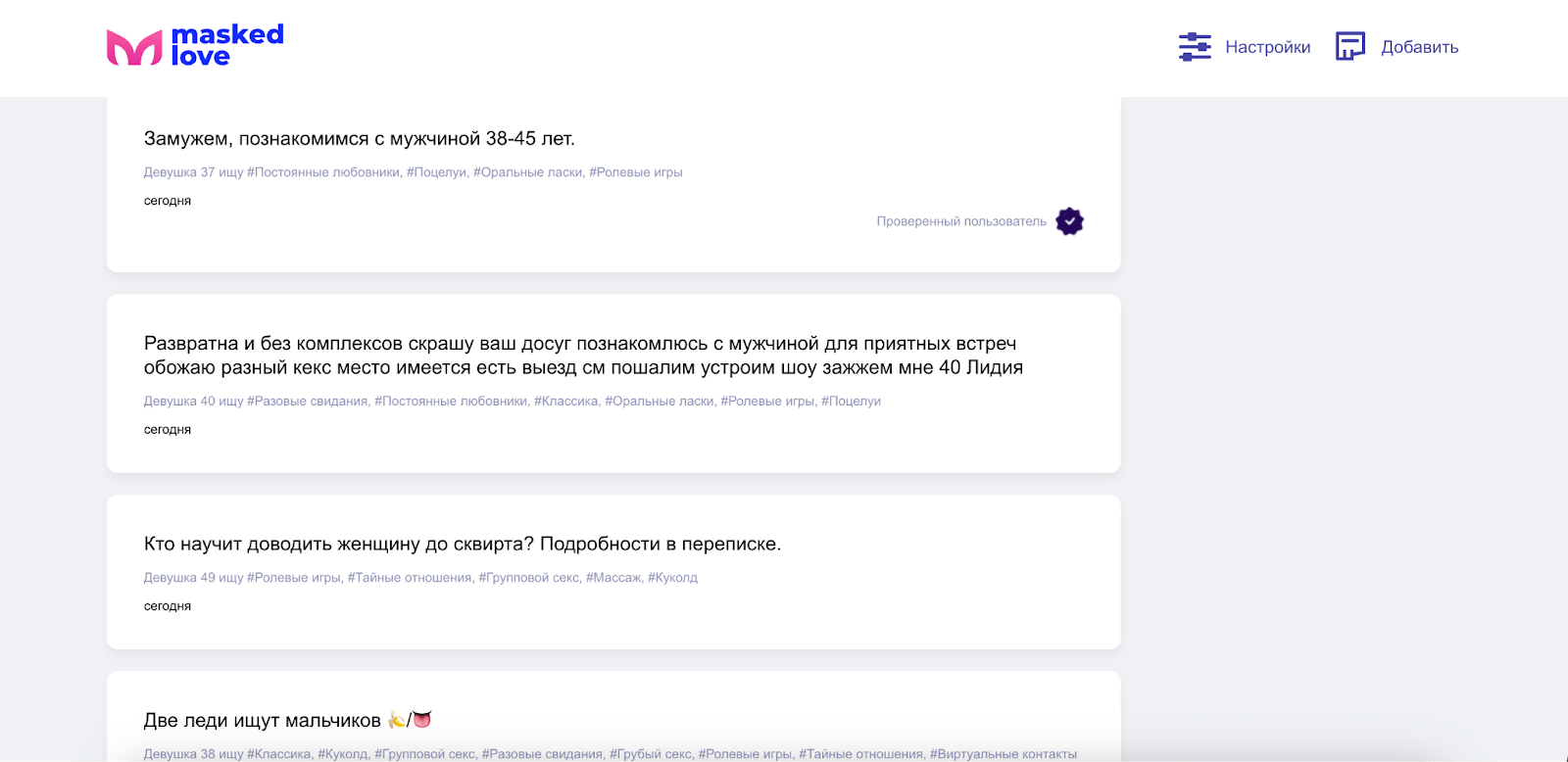 Masked.Love — цифровой маскарад для тех, кто не хочет светить личными данными. Никаких требований указывать реальное имя или привязывать соцсети — только ты и твоя таинственная аватарка. Здесь важно то, что у тебя в голове, а не в паспорте.