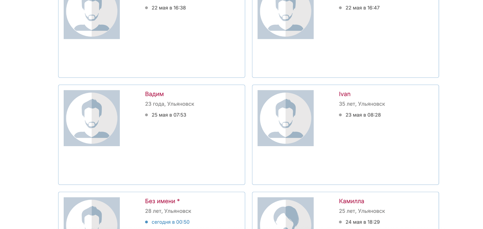Миллион пользователей создают богатый выбор на любой вкус. Модераторы работают как бдительные охранники качества. Демократичный доступ привлекает взрослую аудиторию. Здесь знакомятся те, кто уже знает чего хочет и это хороший бесплатный сайт знакомств в Ульяновске.