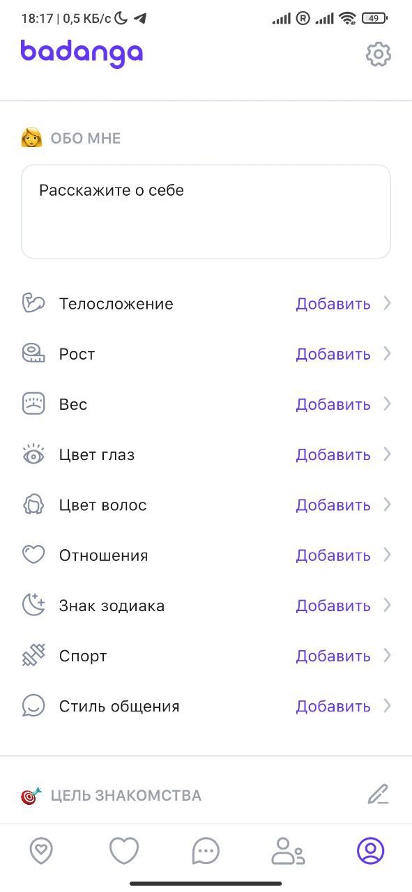 Что можно заполнить о себе? Ваши внешние характеристики, вид отношений, в которых вы заинтересованы, знак зодиака, предпочитаемый стиль общения, языки, интересы и так далее. Как обычно, чем больше — тем лучше для других пользователей.