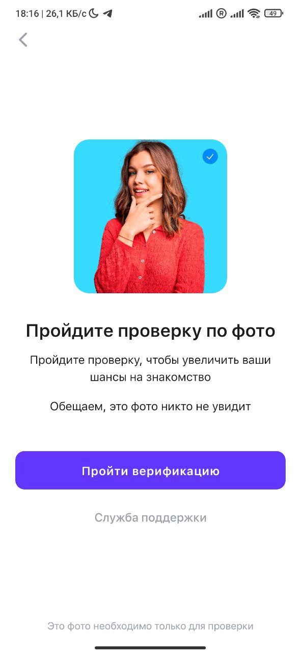 Также вас попросят добавить фотографии: минимум одну, но чем больше — тем лучше. Именно с помощью фото проходит проверка пользователя, однако не описывается, что конкретно таким образом проверяется.