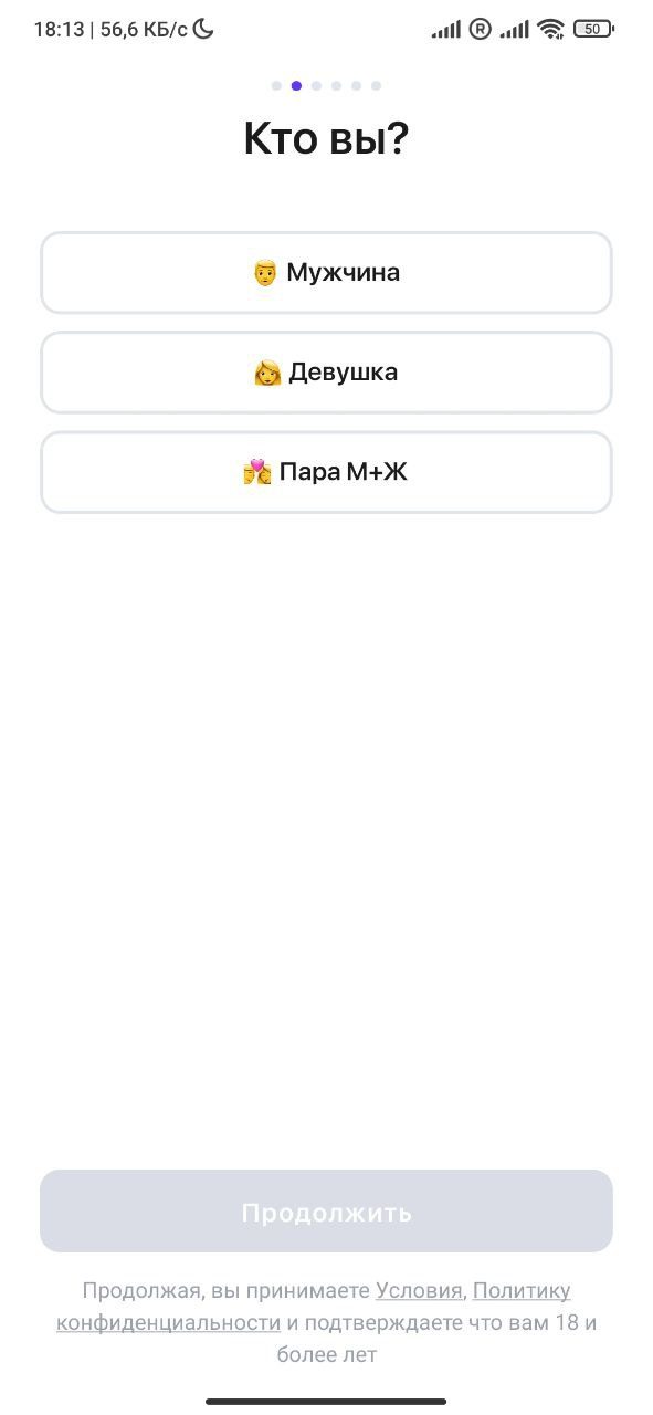 1. Создание профиля. Укажите ваш пол (ищете вместе с партнером — тоже можете это указать), дату рождения, имя или псевдоним, а также ваши цели. Они довольно обширны, еще не встречала нигде, чтобы можно было отметить конкретно “приятное времяпрепровождение” (а вдруг мне не с кем покататься на роликах?) и “совместные путешествия”. За это лайк однозначно!