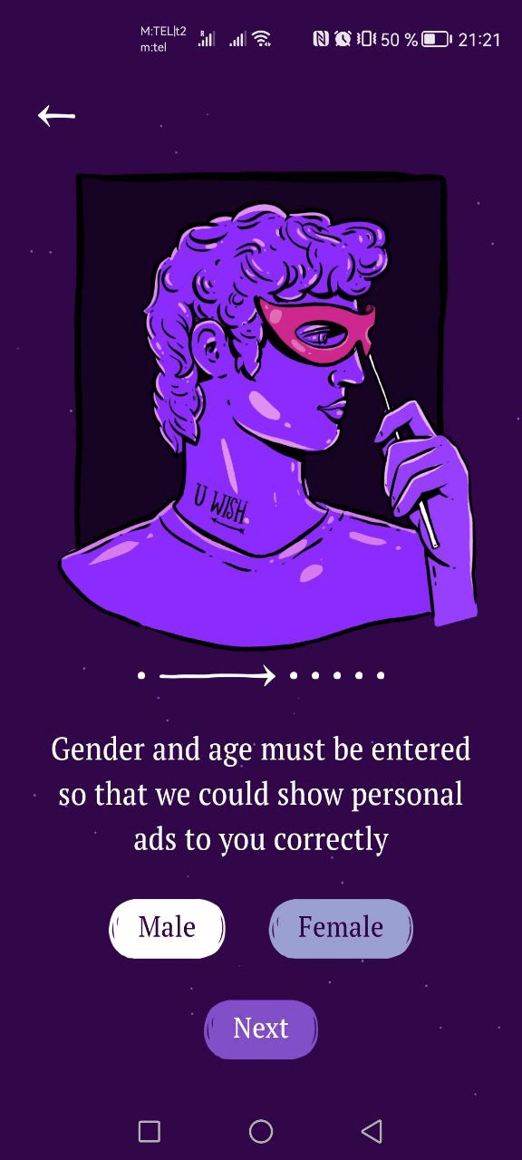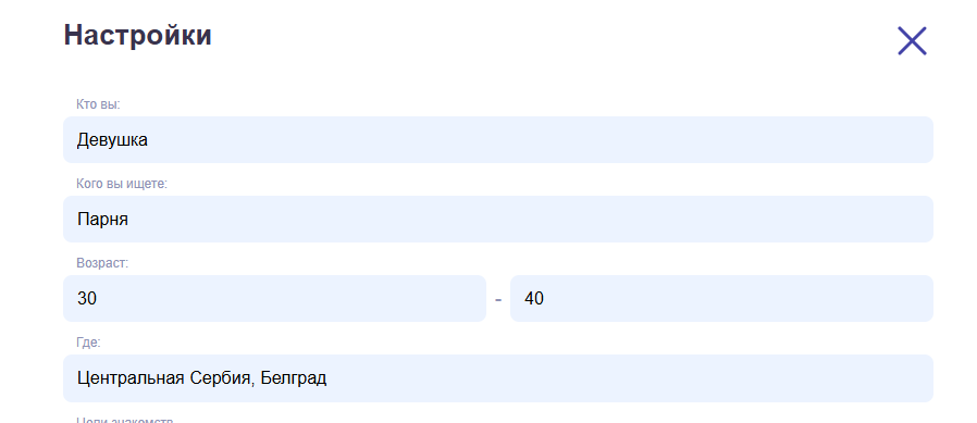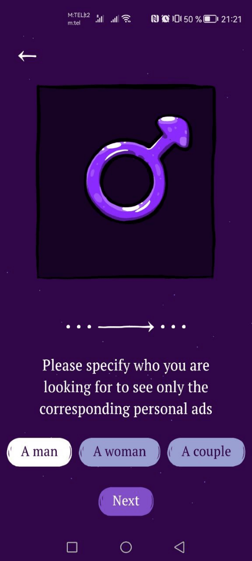 Затем вы указываете свой пол, возраст и кого хотите найти: мужчину, женщину или пару.
