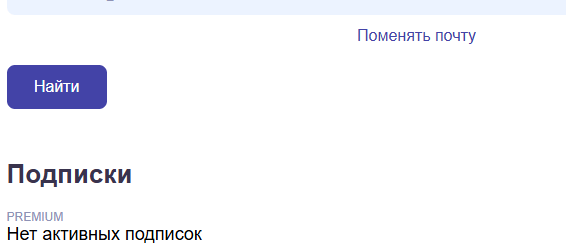 Также у меня появилась возможность поменять почту, а также увидеть, есть ли у меня активные платные подписки.
