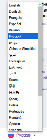 В левом нижнем углу легко сменить русский язык на другой, если возникнет необходимость.