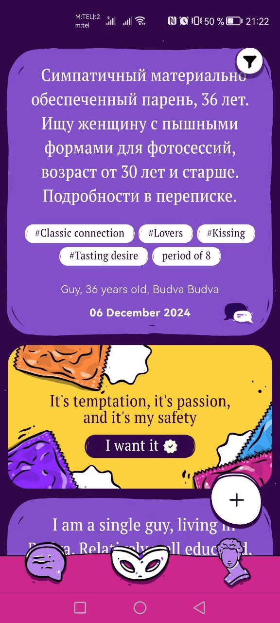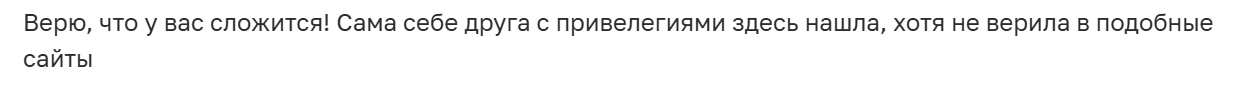 - есть риск получить чересчур смелое предложение, но от этого никто не застрахован ни одном сайте. По крайней мере, здесь никто не видит ваши персональные данные, что делает процесс поиска и общения намного безопаснее.