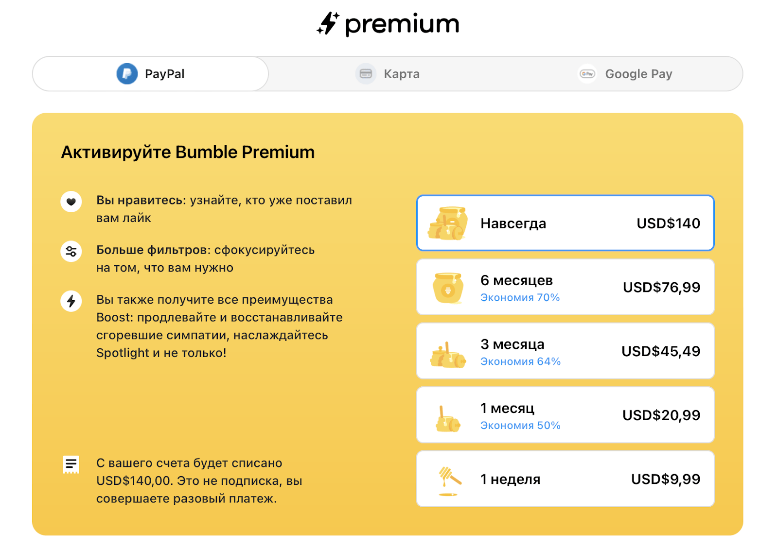 Платные функции Bumble для тех, кто хочет большего. Всё, чтобы не просто свайпать, а делать это с размахом! Bumble платный эффективнее так, как работает на более узкую аудиторию.