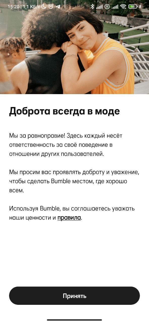Сам Bumble заверяет, что на их сайте безопасно. Согласно их правилам, за неуважительное общение и провокационные фотки сразу банят.