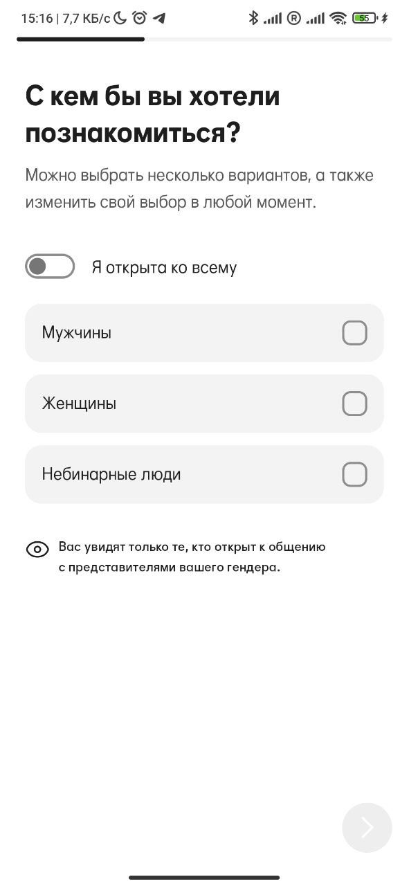 На Bumble женщины делают первый шаг во всех симпатиях. Если вы решите скрыть свой пол, то писать вам может кто угодно, как и вы сами.