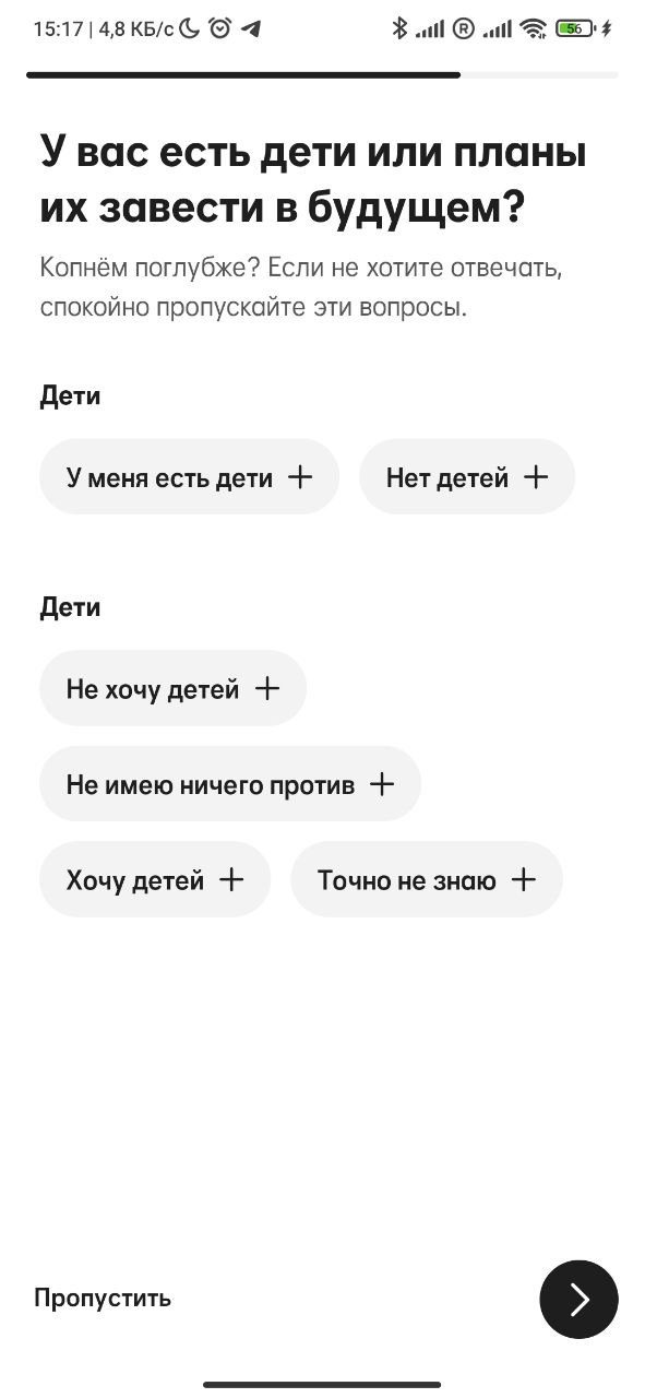 3. Заполнение анкеты. Знак зодиака? Есть. Стиль общения? Да пожалуйста! Чем больше подробностей — тем выше шансы. Тем более, что вопросы здесь задают действительно важные.