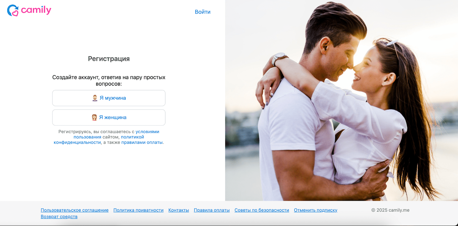 Как зарегистрироваться в Camily? Вам предстоит пройти всего пару этапов: