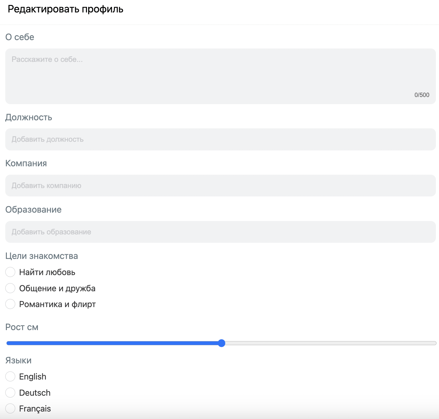 1. Заполнение анкеты: Формально требуется указать предпочтения, но из-за низкой активности пользователей это мало влияет на результат. Еще и анкета довольно странная, зачем кому-то знать, где я работаю?