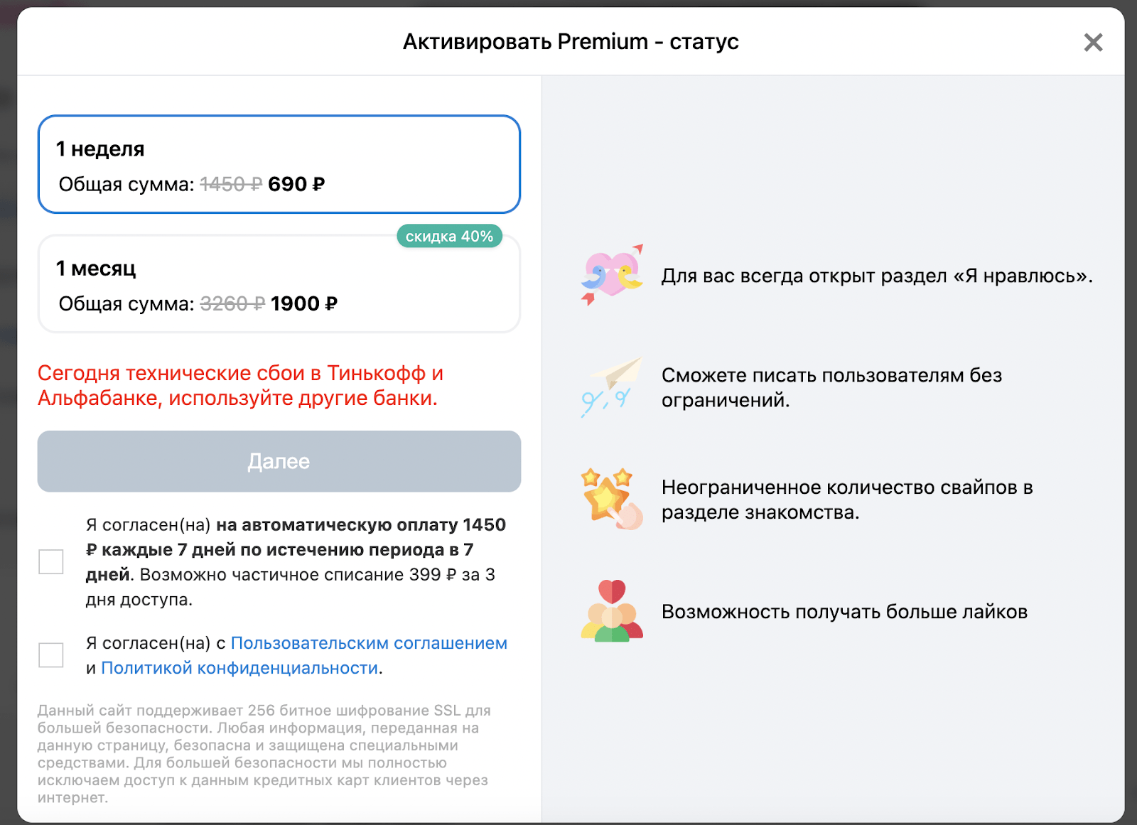 Пробный период10₽ за 3 дняПотом автоматом 399₽ каждые 3 дня