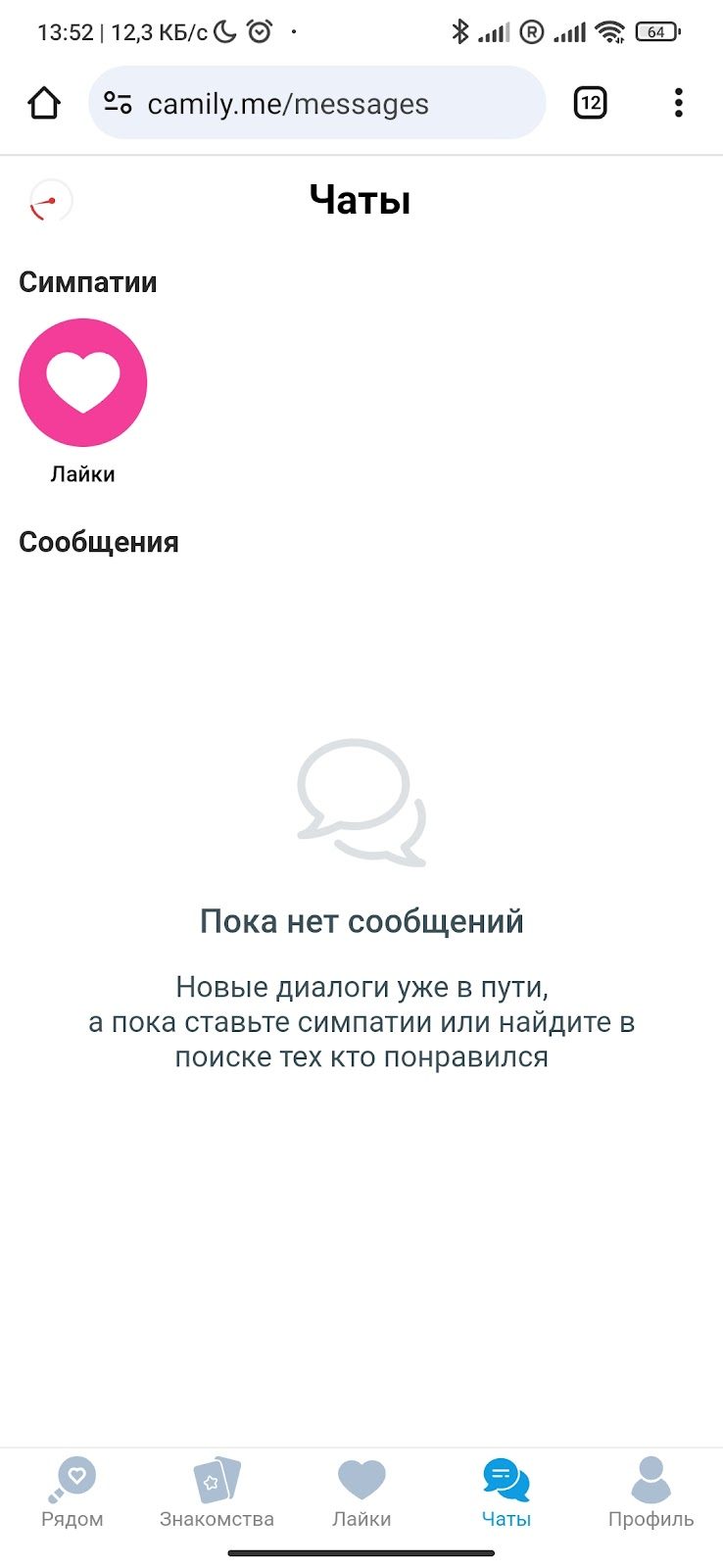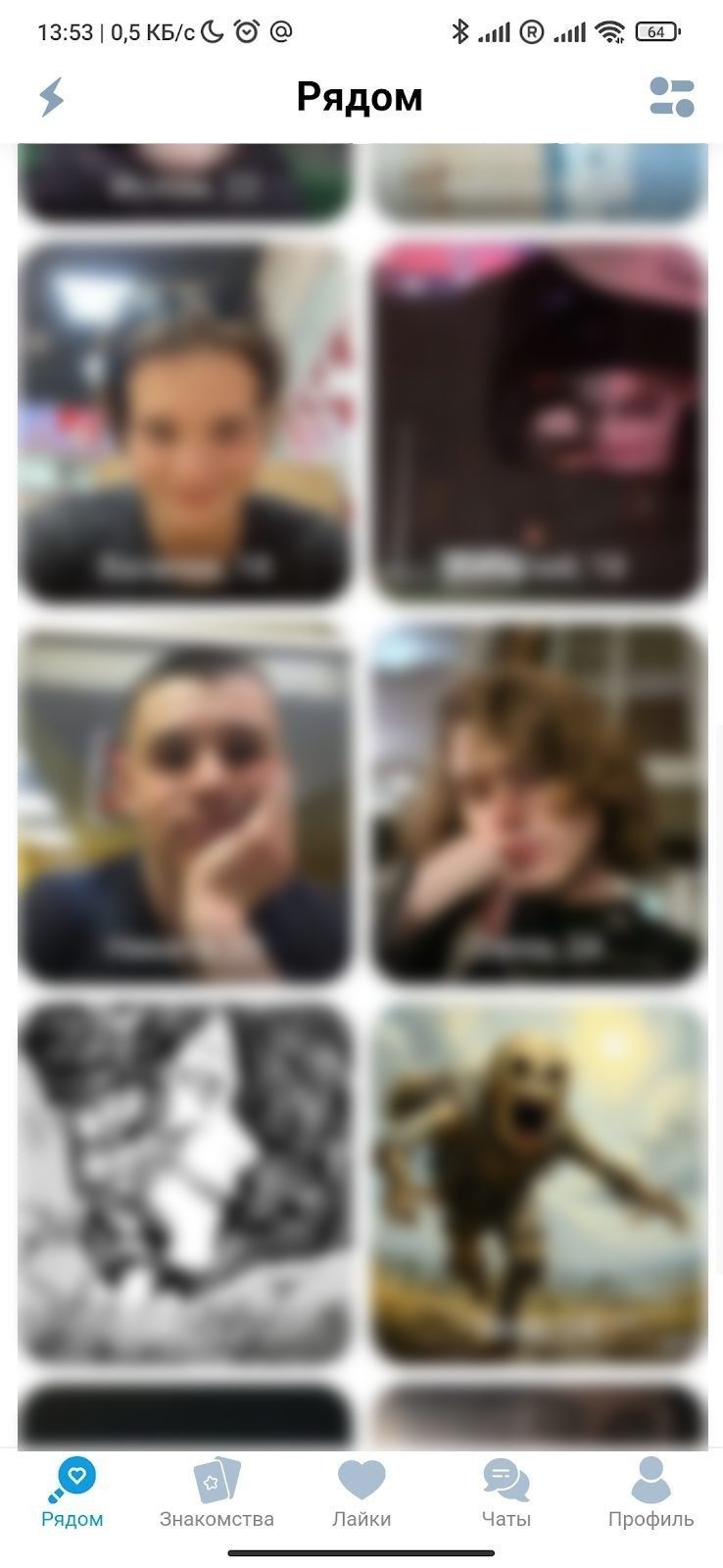 • Лайки и совпадения: Бесплатно можно ставить лайки, но видеть, кто лайкнул вас — только за деньги. При этом самое забавное, что когда тебе предлагают кандидатов поблизости, вскрывается реальная картина живых пользователей на этом сайте. Я нахожусь в достаточно крупном городе, но рядом со мной в радиусе 100 км оказалось всего 6 парней. Захотелось плакать, честно говоря.