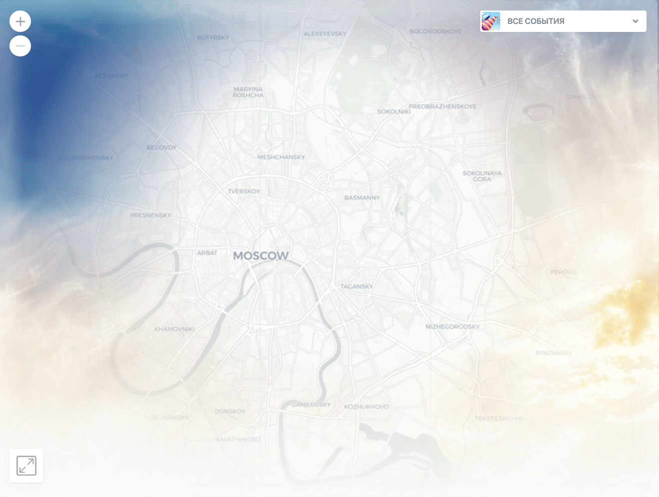 - События. Вы можете создать мероприятие, например, поход в кино или на выставку (или на вечеринку 18+), и ждать, кто к вам присоединится. Звучит круто, но что делать, если даже в столице России нет ни одного? А ведь они должны быть отмечены на карте.