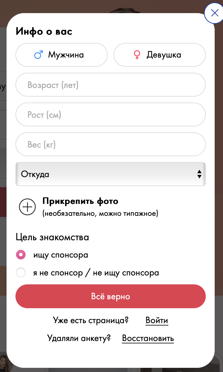 Целевая аудиторияСпонсоры и содержанкиЛюбители лёгкого флиртаПользователи, ценящие анонимностьУспешные мужчины и женщиныСпонсоры и содержанкиПремиальные спонсоры и содержанки