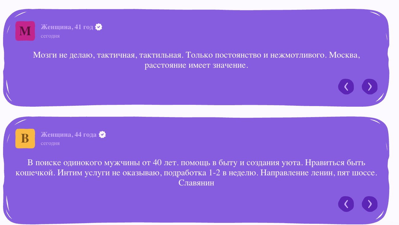 Masked Love открыл глаза на то, как должны выглядеть современные сайты для поиска папика. Главное отличие от классических сайтов знакомств - здесь нет анкет и фотографий. Пишешь объявление в свободной форме: кого ищешь, на каких условиях. Город выбираешь в фильтрах, можно выбрать любой город мира. Формат спонсорских отношений можно обозначить прямо в тексте. Никто не удалит и не попросит переформулировать. Мне понравилось, что не нужно ничего из себя изображать с первых секунд. Не пришлось заморачиваться с кучей фото и заполнением длинных анкет. Написала коротко, что ищу, и уже через пару часов были первые отклики. Подруга, правда, нарвалась на скамера. Ее потенциальный папик попросил прислать паспортные данные, чтобы я кобы проверить ее. Конечно, такое делать не надо.