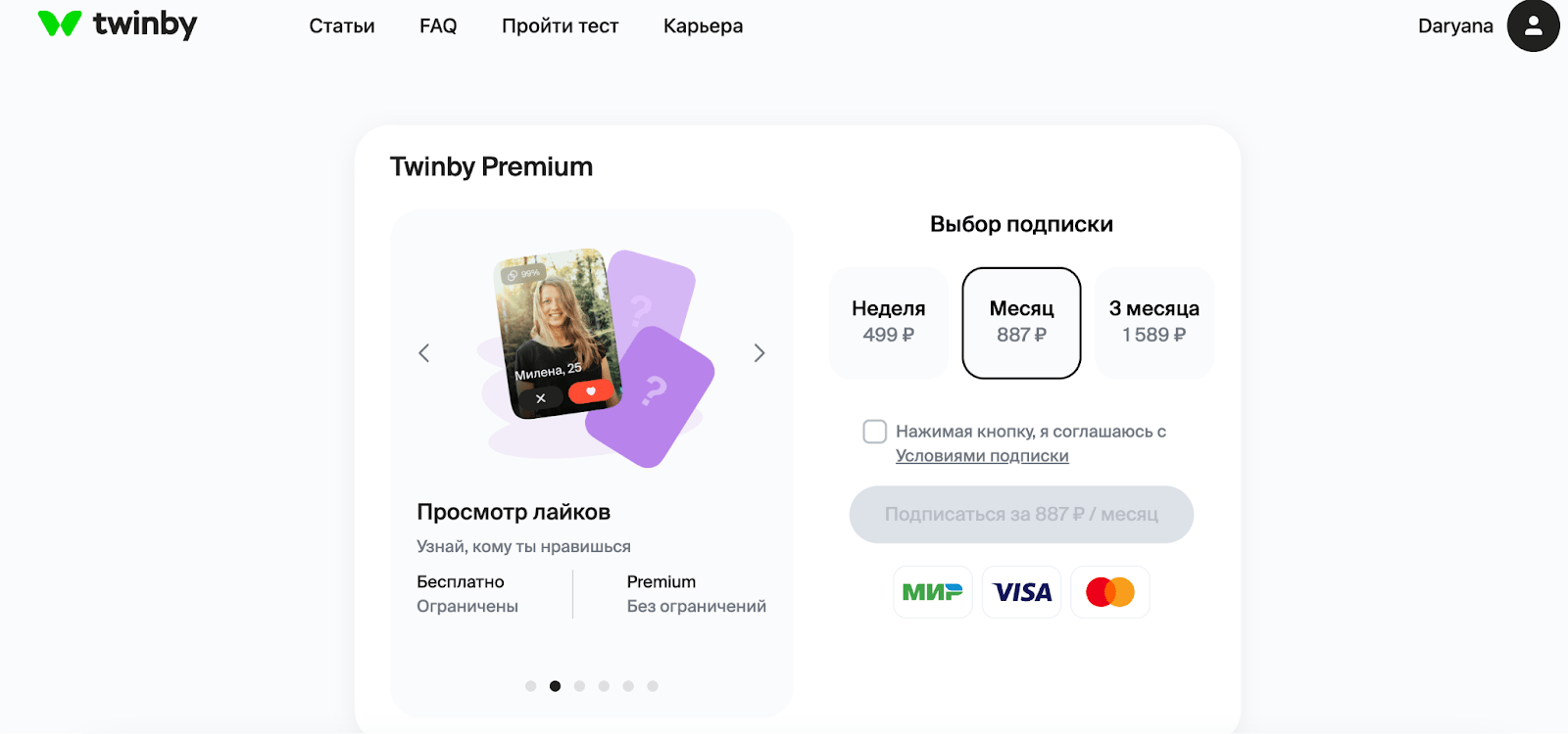 Веб-версия функционально уступает приложению, а модерация хоть и есть, но явно перегружена – фейки и боты встречаются часто. Общаться бесплатно можно, но без подписки возможностей мало.