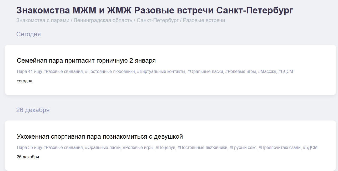 Листаешь ленту, и каждая анкета как открытая книга: «Успешный мужчина ищет страстную подругу», «Семейная пара познакомится с девушкой», «Спортсмен пригласит в гости сегодня». Всё по делу, без намеков и недосказанности. Выбираешь, списываешься, встречаешься — никакой воды и пустых чатов.
