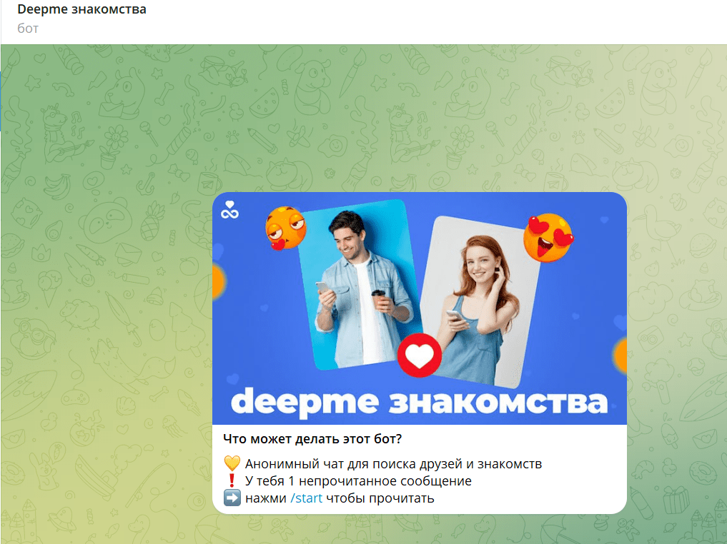 DeepMe — это Telegram-бот, что удобно для быстрых знакомств.