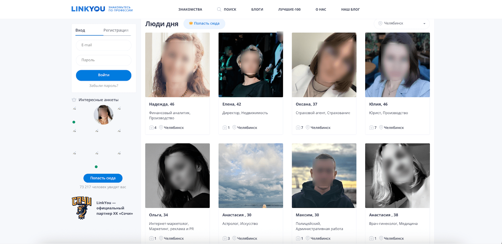 LinkYou — как бизнес-клуб среди сайтов знакомств в Челябинске. Здесь между обсуждением отчетов можно встретить человека мечты. Место для тех, кому карьера и амбиции не пустой звук.