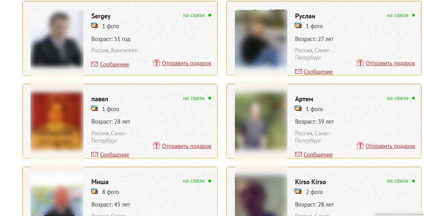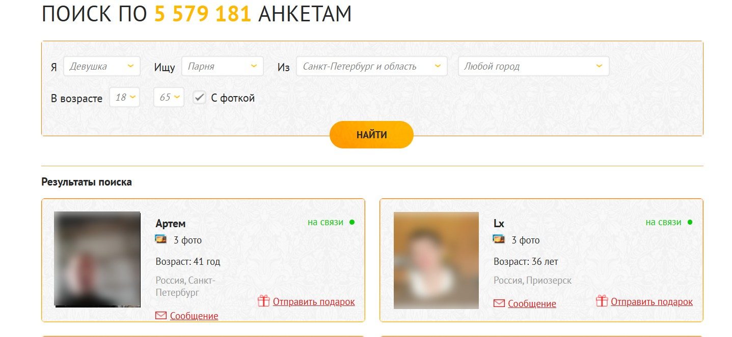 - Ограниченный поиск — базовые фильтры по возрасту и региону